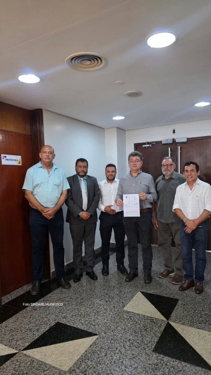 Participaram especialmente da mobilização no Palácio Araguaia, na tarde de hoje: Jorge Couto, Suzano Lino e Artur Barros, do Sindare e da Audifisco; Dr. Emerson Moura, do Sindepol; Dr. Reginaldo Abdala, do Simed; e Divaldo Andrade, do Sindifiscal. Mais cedo, na reunião, houve também a participação do Ten. Cel. De Souza, da Aometo.